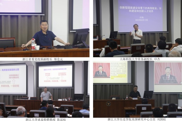 此次培训主题鲜明、内容丰富、形式多样、针对性强。邀请浙江省委党校原副校长郑仓元、上海科技大学常务副校长印杰、浙江大学求是特聘教授陈昆松、浙江大学历史学院美国研究中心主任刘国柱、华东师范大学组织与人力资源管理教授易凌峰、教育部思想政治理论课教学指导委员会副主任高德毅、浙江省文联原党组书记田宇原、杭州师范大学党委副书记应飚等8位专家教授,分别围绕学习贯彻党的二十大精神、教育改革发展、学科建设及创新人才培养、国家安全体系构建、领导力提升、高质量思政教育体系构建、推进文化自信自强、校园公共危机事件处理等主题作辅导报告。现场教学环节,分别在浙江大学紫金港校区参观浙大校史馆,感受百年高校文化,在嘉兴南湖革命纪念馆瞻仰南湖红船、聆听光辉党史、重温入党誓词。结班仪式上,邢晟、王伟、和萍、张华等4位学员代表结合自身学习思考和工作实际,进行了学习心得交流发言。