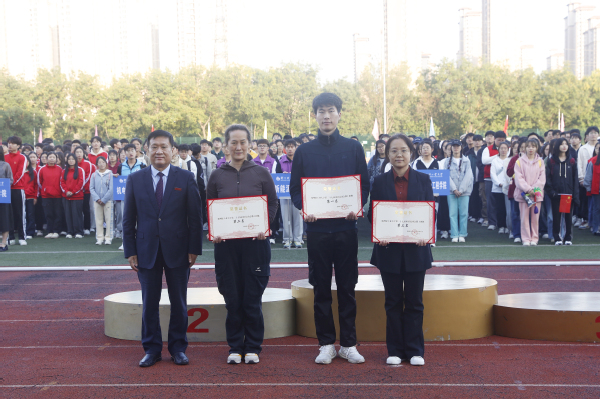 校长魏世忠为获学生男、女团体总分前三名的单位颁奖
