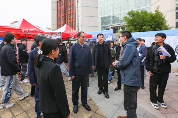 11月9日,由学校承办的河南省2023年计算机类/人工智能类高校毕业生就业专场双选会在科学校区举行。校长魏世忠、党委副书记杨新宇、河南省教育厅学生处四级调研员钱鹏俊到双选会现场指导工作,相关学院和部门负责同志陪同。