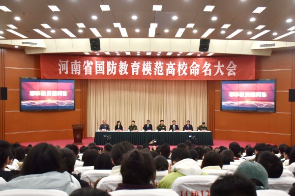 近日,河南省委宣传部、河南省教育厅和河南省军区在郑州隆重召开了“河南省首届国防教育模范高校命名大会”。本次大会对首届成功创建国防教育模范高校进行了命名,对国防教育先进工作者和优秀教师进行了表彰,我校被授予“河南省国防教育模范高校”荣誉称号。学校党委副书记杨新宇代表学校参加了大会。