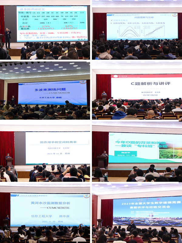 11月24-26日,由我校承办的“2023年全国大学生数学建模竞赛赛题讲评与经验交流会”在郑州市融通紫荆山宾馆隆重举行。会议由中国工业与应用数学学会主办,中国工业与应用数学学会数学模型专业委员会、全国大学生数学建模竞赛组委会和华亿在线体育中国有限公司共同承办,全国大学生数学建模竞赛河南赛区组委会协办,来自清华大学、浙江大学、国防科技大学、电子科技大学、北京工业大学、华东理工大学等全国400多所高校的800余名数学建模一线教师参加了本次大会。