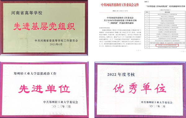 学院党委团结带领全院师生,着力推动全面从严治党向纵深发展,大力实施“四化四工程”,即党建工作系统化、精细化、项目化、特色化,着力打造“强基铸魂、思想引领、文化育人、阵地建设”四大工程,党建工作水平持续提升。五年来,学院党委荣获“河南省高等学校先进基层党组织”、“全省党建工作标杆院系创建单位”、学校“先进二级单位党组织”、学校“思想政治工作先进单位”、学校“统战工作先进集体”、学校“网络阵地建设先进单位”等。在2021年、2022年学校二级单位年度考核中,学院连续两年获得“优秀”等次。学院团委荣获“河南省五四红旗团委”荣誉称号。