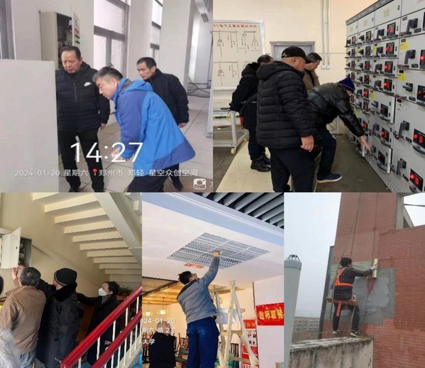 全方位排查检修教学楼、学生公寓楼等室内外水、电、气、暖设备及教学、生活设施,每天进行安全巡查,维修人员全时待命,确保寒假期间各类动力设备设施正常运行。