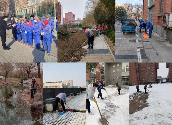 持续的天寒地冻,挡不住前行的路。天台上、道路边、河岸旁、楼宇内,保洁员们的身影忙碌在校园的各个角落,他们无惧风雪、不辞劳苦,除杂草、扫落叶、通排水、清积雪,用双手扫出片片洁净,用朴实和勤劳为校园增彩扮靓。
