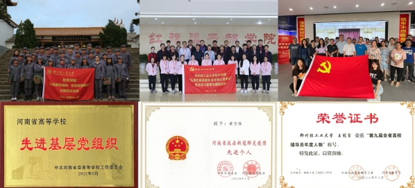 2021年荣获河南省高校先进基层党组织;获批河南省本科高校课程思政特色化教学研究示范中心和省课程思政教学团队。获评全国样板党支部和省级样板党支部各1个,学院团委荣获河南省“五四红旗团委”;1名同志获河南省抗击新冠肺炎疫情先进个人,获河南省文明教师、省高工委优秀共产党员和优秀辅导员各1人,获省辅导员年度人物和年度人物提名奖各1人。