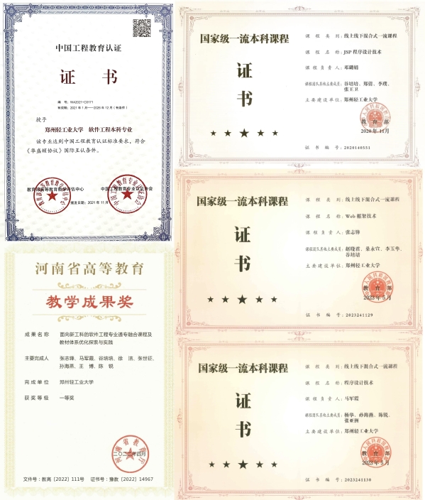 新增本科专业(方向)5个,软件工程专业获首批国家级一流专业建设点,通过工程教育认证,获批国家级一流课程3门,新增省级课程11门次。获批省高等学校优秀基层教学组织2个;获省级教学成果奖7项,其中一等奖2项,二等奖5项;新增省高等教育教学改革研究与实践项目(本科生教育)9项;出版教材及著作30余部,其中国家级、省级规划教材10部。