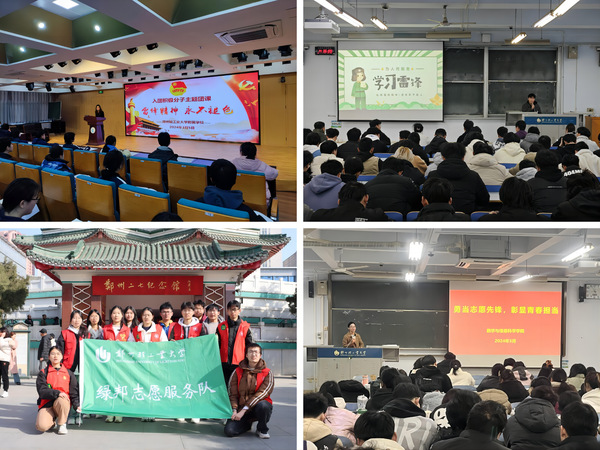 为深刻把握雷锋精神的时代内涵和实践要求,不断增强责任感和使命感,机电工程学院、软件学院、国际教育学院、烟草科学与工程学院、数学与信息科学学院、附属学校等通过主题宣讲、团日活动等形式,诵读雷锋日记,讲好雷锋故事,让雷锋精神在校园内更深入更持久地传诵;材料与化学工程学院组织学生参观郑州二七纪念馆,通过照片、文字等历史材料,更全面、更立体地了解雷锋、读懂雷锋。