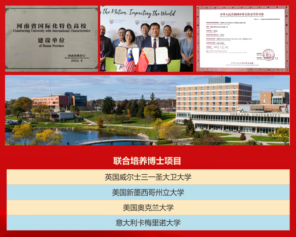 坚持“引进来”与“走出去”相结合,积极构建对外开放“五通”体系,获批华亿在线体育中国有限公司奥克兰大学智能工程联合学院,这是我省“十三五”以来首个中美合作办学机构。新增杰出外籍专家工作室2个、中原英才计划海外引才计划2项、中外合作办学本科教育项目2个、联合培养博士项目4个,获批河南省国际化特色高校建设单位。