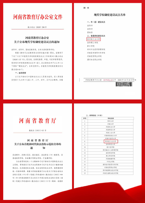 入选河南省“首批新时代依法治校示范校”“现代学校制度建设试点单位”,与现代大学制度相适应的管理体制和运行机制更加健全。