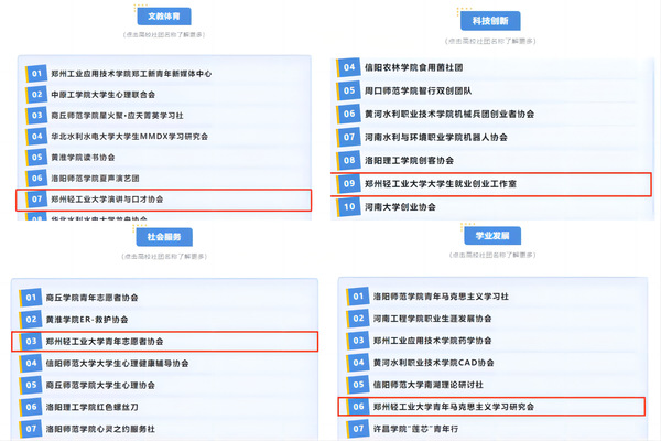 近日,由共青团河南省委开展的2023-2024学年高校“活力社团”风采展示活动TOP100榜揭晓,我校演讲与口才协会、大学生就业创业工作室、青年志愿者协会、青年马克思主义学习研究会入围2023-2024学年河南高校“活力社团”TOP100榜,且分别在文教体育、科技创新、社会服务、学业发展四个领域榜单中位列前10名。