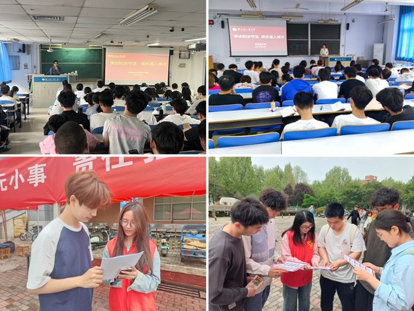 创新教育形式,确保法治教育实效。学校积极创新法治教育宣传形式,以“看得见、听得懂、记心间”的方式开展了为期一周的宣传教育系列活动。活动期间,各学院通过新媒体平台、制作宣传标语、观看法治影片、法律知识竞赛、演讲及宣讲等形式多样的法治教育宣传活动,集中对《中华人民共和国教育法》《中华人民共和国民法典》等法律法规进行了广泛宣传,教育引导青年学生人人知法、人人守法。