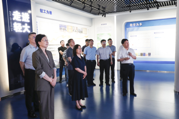 在学校特色成果展厅,党委书记黄荣杰详细介绍了我校历史沿革、近年来在学科建设、科学研究、人才培养等方面的发展情况,并就学校在科技成果转化方面的工作举措、取得的成效、存在问题和下一步工作计划进行了汇报。
