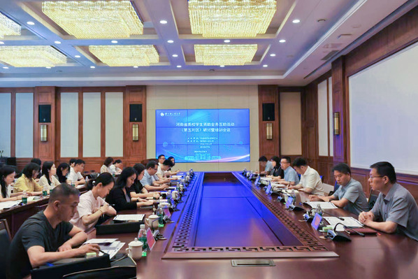 6月25日,河南省高校学生资助业务互助活动(第五片区)研讨暨培训会在我校举办。河南省学生资助中心副主任戴晓明、我校党委副书记杨新宇,以及河南中医药大学、河南工业大学、新乡医学院等十余所高校的学生资助工作分管领导和负责同志参加会议。