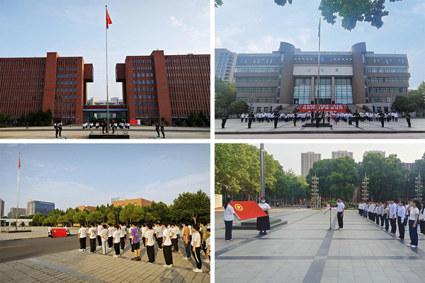 伴随着清晨的阳光,两校区参加活动的师生代表们在科学校区主教楼前和东风校区图书馆前整齐列队,英姿飒爽的国旗护卫队迈着铿锵有力的坚定步伐护送国旗入场,在雄壮高昂的国歌声中,鲜艳的五星红旗冉冉升起。师生全体肃立,行注目礼,高唱国歌,共同表达对党、对祖国的忠诚和热爱。主持人宣读了2024年上半年新入团团员名单,学校团干为新团员代表佩戴团徽并颁发团员证。随后,两校区团员代表分别发言,表示要时刻牢记团员身份,按照团员标准严格要求自己,在同学中起到模范带头作用,坚定不移的听党话、跟党走,争做有理想、敢担当、能吃苦、肯奋斗的新时代好青年,以优异成绩为团旗添彩、为国旗增色,在推进强国建设、民族复兴伟业中展现作为、彰显风采、贡献力量。
