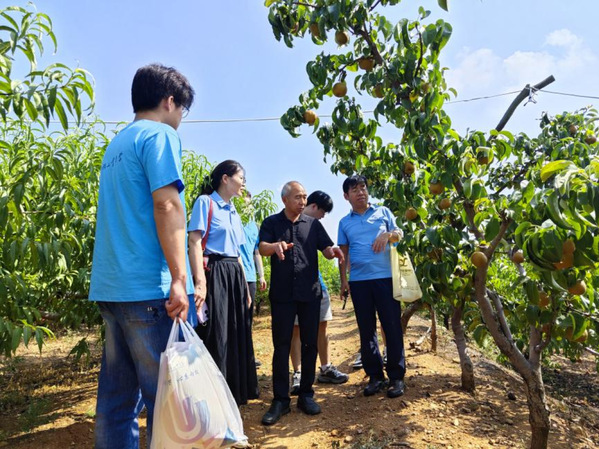 在对当地万亩果园种植基地调研时,孙新城教授建议当地通过智慧保鲜、深加工技术和“四化”路径来推动产业链升级。材料与化学工程学院“绿邦”志愿服务队依托环境工程专业,举办科学性与趣味性的“垃圾分类我在行”知识宣讲,让孩子们在玩乐中感受化学乐趣,增强绿色环保意识。实践队员对烟叶、葡萄、玉米种植园等的土质进行勘察与采样,并与种植户对农田的日常管理方式、土壤肥力、化肥农药及除草剂的选用情况进行了常用环保知识科普,用专业知识和青春热情,为乡村土地“把脉问诊”,助力绿色农业可持续发展。