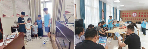 计算机科学与技术学院“智汇乡野·数启未来”实践队联合软件学院“青衿传炬”志愿服务实践队深入泌阳县赊湾镇及新乡村社区,通过“安全防线+科技赋能”双轨模式,为乡村注入发展新动能。在网络安全方面,队员们采用情景剧再现、诈骗流程图解等形式,帮助村民掌握反诈技巧,提升网络安全意识;科技推广方面,队员们运用数字技术演示,生动展示智能灌溉、无人机植保等智慧农业应用,让农户直观感受智慧农业的高效;面向青少年开设的未来课堂更是精彩纷呈,机器狗“铁蛋”的舞蹈表演引发阵阵欢呼,风力发电模型与太阳能小车拼装课吸引众多儿童参与,图形化编程工作坊则带领孩子们创作出多组原创动画作品,激发创新思维。两支实践队以专业所长搭建起城乡科技互通的桥梁,既守护了乡村生活的安全底色,也播撒下科技兴农、创新成长的种子,为赊湾镇及新乡村社区的发展注入持久活力。